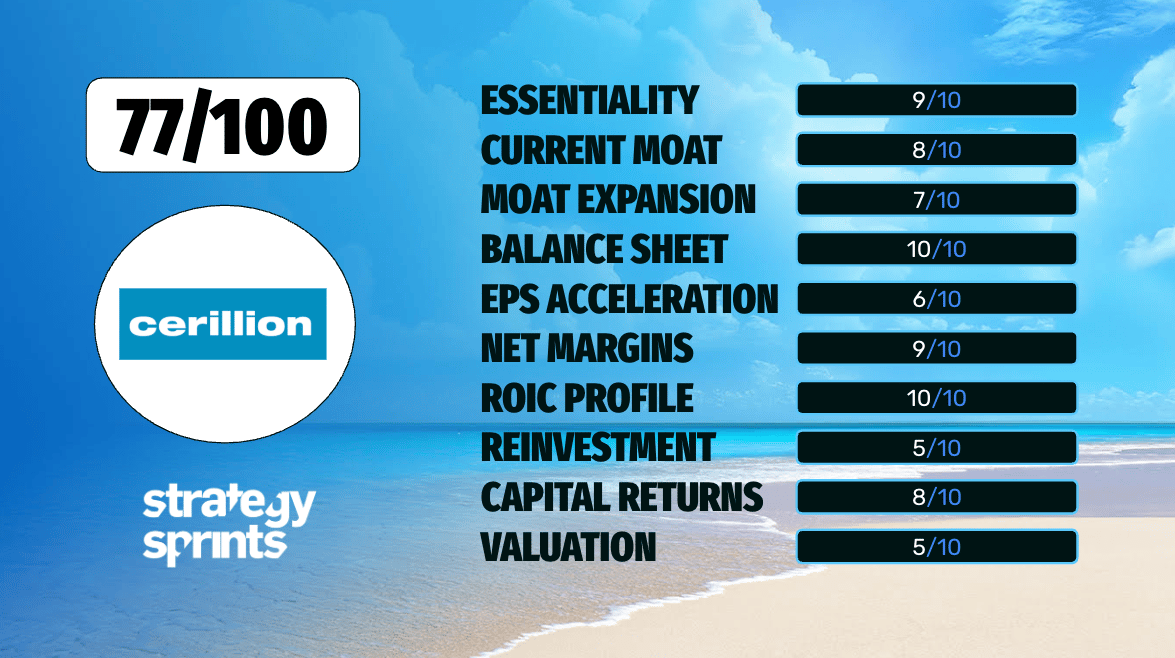 Cerillion represents a textbook quality compounder: founder-led, mission-critical software, exceptional margins, fortress balance sheet, outstanding ROIC, and sticky customer relationships. The main limitations are modest reinvestment opportunities, geographic concentration in Europe (77% of revenue), and a valuation that already reflects much of the quality premium.