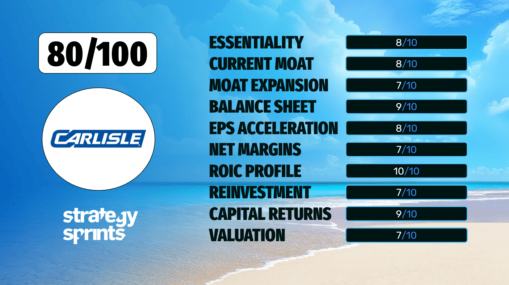 Carlisle Companies represents what quality compounding looks like in practice: a dominant market position in a non-discretionary industry, exceptional capital efficiency, disciplined management, and a clear path to continued value creation.